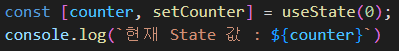 console.log(`ํ์ฌ State ๊ฐ : ${counter}`)